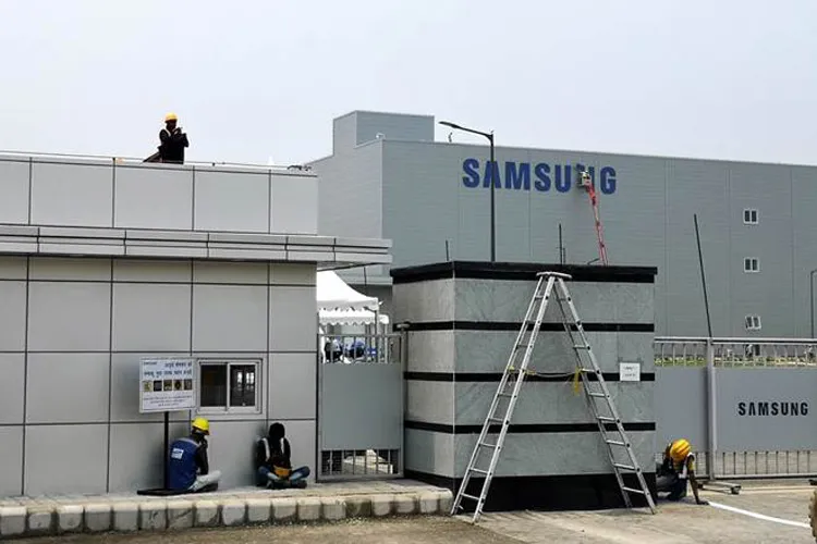 सैमसंग ने भारत में अपनी पहली इलेक्ट्रॉनिक्स विनिर्माण इकाई 1990 की शुरुआत में स्थापित की थी, इस संयंत्र की शुरुआत 1997 से टीवी विनिर्माण के साथ हुई थी। मौजूदा मोबाइल फोन विनिर्माण इकाई की स्थापना 2005 में की गई थी।