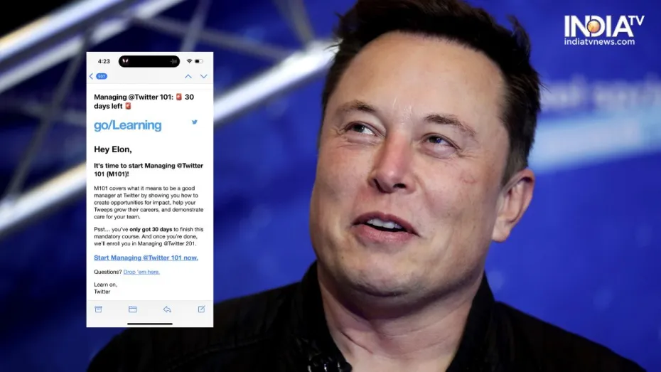 मस्क को आए ईमेल के अनुसार, मस्क के पास जरुरी "मैनेजिंग @Twitter 101" कोर्स समाप्त करने के लिए 30 दिन का समय है।