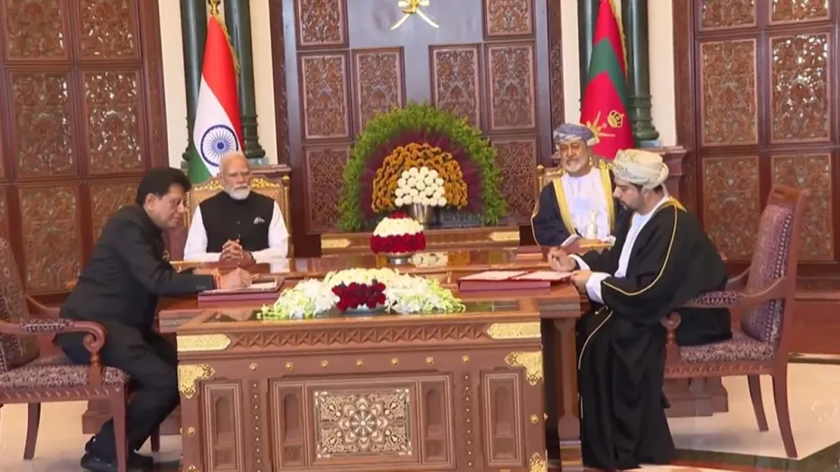 मस्कट में प्रधानमंत्री नरेंद्र मोदी की उपस्थिति में एक ऐतिहासिक क्षण दर्ज हुआ, जब भारत के वाणिज्य एवं उद्योग मंत्री पीयूष गोयल और ओमान के वाणिज्य, उद्योग एवं निवेश संवर्धन मंत्री कैस बिन मोहम्मद अल यूसुफ ने भारत-ओमान मुक्त व्यापार समझौते (एफटीए) पर हस्ताक्षर किए। इस समझौते के तहत ओमान ने अपनी 98 प्रतिशत से अधिक टैरिफ लाइनों (उत्पाद श्रेणियों) पर शून्य शुल्क (जीरो ड्यूटी) पहुंच प्रदान की है, जिसमें भारत से ओमान जाने वाले निर्यात का 99.38 प्रतिशत हिस्सा शामिल है।