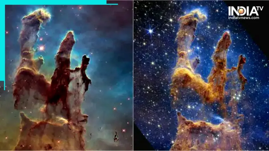 पिलर्स ऑफ क्रिएशन के वेब के नए दृश्य को पहली बार 1995 में नासा के हबल स्पेस टेलीस्कोप द्वारा और फिर 2014 में दोबारा से चित्रित किया गया था। हजारों तारे टिमटिमाते हुए ब्रह्मांड के बीच में खड़े विशाल सोने, तांबे और भूरे रंग के पिलर्स के टेलीस्कोप के पहले शॉट को रोशन करते हैं।