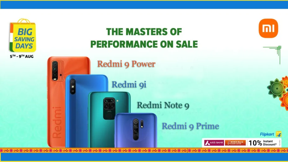अगर आप अपने पुराने फोन से बोर हो गए हैं और कम कीमत में नया स्मार्टफोन खरीदना चाहते हैं, तो भारत की सबसे बड़ी स्मार्टफोन कंपनी शाओमी सबसे शानदार मौका लेकर आई है। शाओमी अपनी रेडमी 9 सीरीज के स्मार्टफोन को भारी डिस्काउंट के साथ पेश कर रही है। कंपनी का यह डिस्काउंट ईकॉमर्स वेबसाइट फ्लिपकार्ट से खरीदारी करने पर मिल रहा है। इसके साथ ही एक्सिस बैंक और आईसीआईसीआई बैंक के कार्ड पर स्पेशल कैशबैक भी मिल रहा है। बता दें कि फ्लिपकार्ट पर यह बिग सेविंग डेज सेल 5 से 9 अगस्त के बीच चलेगी।