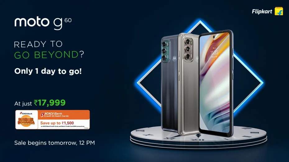 moto g60 यूजर्स की सुविधा के लिए एनएफसी टेक्नोलॉजी के साथ आता है और इसमें आईपी52 रेटेड वाटर-रेपलेंट डिजाइन है जो इस डिवाइस को प्रतिदिन उपयोग के लिए एक आदर्श बनाता है। यह स्मार्टफोन उपभोक्ताओं के लिए 27 अप्रैल से दोपहर 12 बजे से फ्लिपकार्ट पर उपलब्ध करा दिया गया है। आईसीआईसीआई बैंक क्रेडिट कार्ड और आईसीआईसीआई डेबिट/क्रेडिट कार्ड ईएमआई पर 1500रुपये का इंस्टैंट डिस्काउंट दिया जा रहा है।