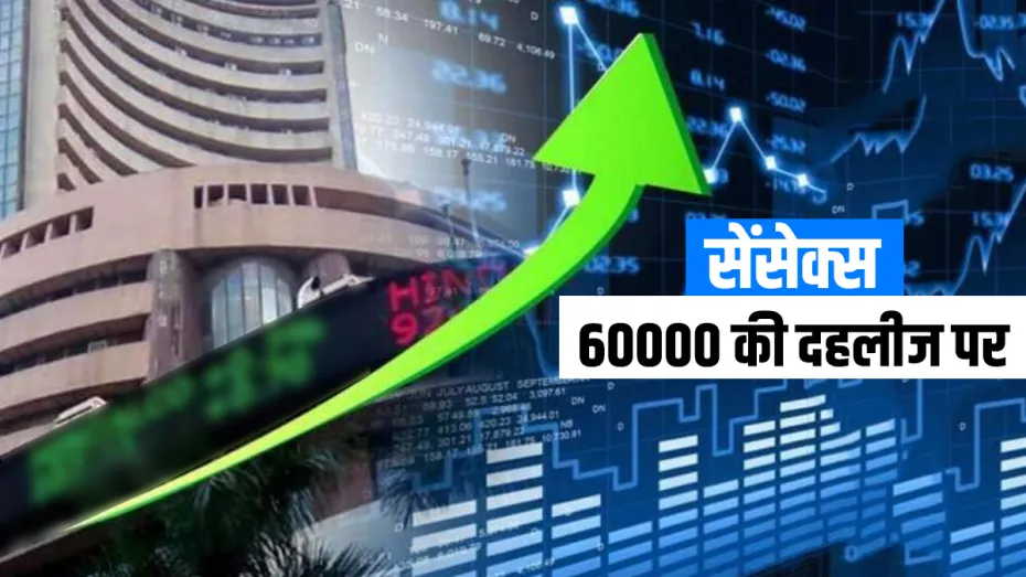 भारतीय शेयर बाजार की रिकॉर्ड तोड़ रफ्तार का सिलसिला जारी है। गुरुवार को एक और जबर्दस्त छलांग के साथ बाजार 60000 अंकों की दहलीज पर पहुंच गया है। गुरुवार (दोपहर 1.10 बजे) सेंसेक्स 759.96 अंकों की तेजी के साथ 59,687.29 पर पहुंच गया है। इसे देखते हुए माना जा रहा है कि बाजार शुक्रवार तक 60000 रुपये का रिकॉर्ड स्तर छू सकता है। बता दें कि इसी साल 3 फरवरी को भारतीय शेयर बाजार में 50000 का स्तर पार किया था। ऐसे में सिर्फ 8 महीनों के भीतर शेयर बाजार ने करीब 10000 अंकों की छलांग लगाई है।
