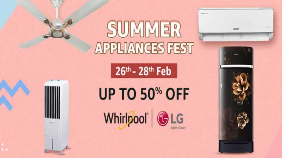 Amazon पर समर एप्लाएंसेस फेस्ट के दौरान, उपभोक्ता वोल्टास, एलजी, डैकिन, व्हर्लपूल, सैमसंग, सिम्फनी, गोदरेज और अन्य जैसे बेस्ट एप्लाएंसेस ब्रांड्स पर बड़ी बचत कर सकते हैं। इतना ही नहीं उपभोक्ता एक्सिस बैंक क्रेडिट और डेबिट कार्ड एवं ईएमआई पर 7500 रुपये के न्यूनतम खर्च पर 10 प्रतिशत (1500 रुपये तक की) की अतिरिक्त बचत भी हासिल कर सकते हैं।