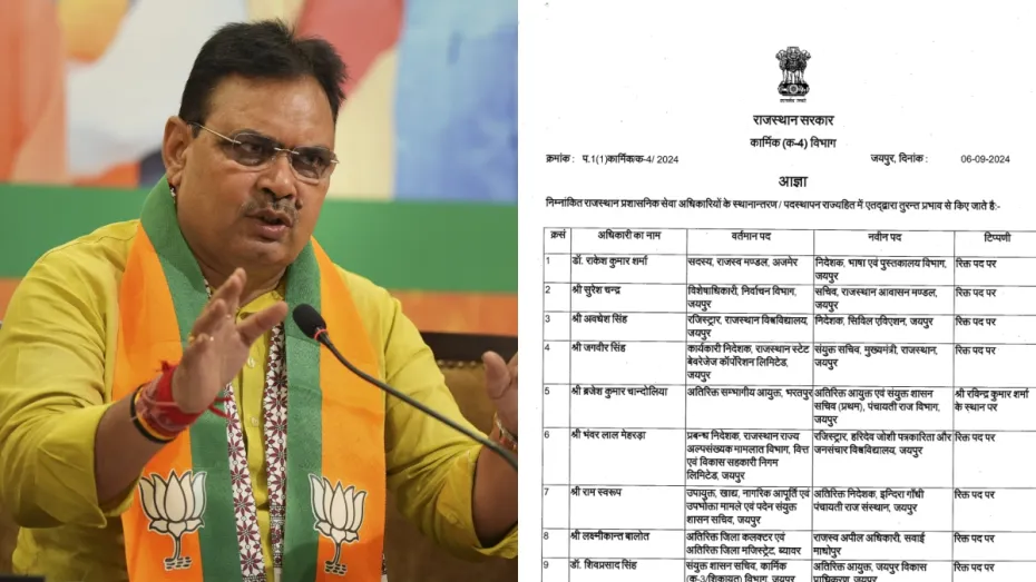 राजस्थान में भजनलाल शर्मा सरकार प्रशासनिक फेरबदल में जुटी हुई है। शुक्रवार (6 सितंबर) के दिन 108 आईएएस अधिकारियों के बाद 386 आरएएस अधिकारियों का ट्रांसफर कर दिया गया। अधिकारियों के तबादले की पूरी लिस्ट आ चुकी है। अधिकतर अधिकारियों को पहले से रिक्त पद पर तैनात किया गया है। एक सप्ताह पहले राज्य के पूर्व मुख्यमंत्री अशोक गहलोत ने एक्स पोस्ट में लिखा था कि तबादले का इंतजार कर रहे अधिकारी असमंजस में हैं। विपक्ष में रहने के दौरान भारतीय जनता पार्टी के नेता अधिकारियों की नियुक्ति पर अनर्गल सवाल उठाते थे। अब आठ महीने सरकार में रहने के बावजूद इसमें कोई बदलाव नहीं हुआ है। इससे साबित होता है कि उनकी सरकार ने जो नियुक्तियां की थीं, वह सही थीं।