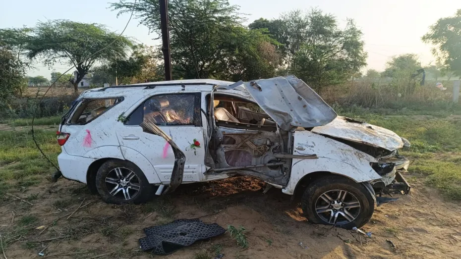 मिली जानकारी के अनुसार सभी युवक मोई गांव में अपने दोस्त की बारात में शामिल होने आए थे। देर रात फॉर्च्यूनर गाड़ी लेकर किसी काम से चिड़ावा की ओर जा रहे थे। इसी दौरान भैंसावता के नजदीक तेज रफ्तार गाड़ी अचानक अनियंत्रित हो गई। गाड़ी ने कई पलटियां खाईं और उछलते हुए सड़क से दूर खेत में जा गिरी। हादसा इतना भीषण था कि गाड़ी पूरी तरह चकनाचूर हो गई।