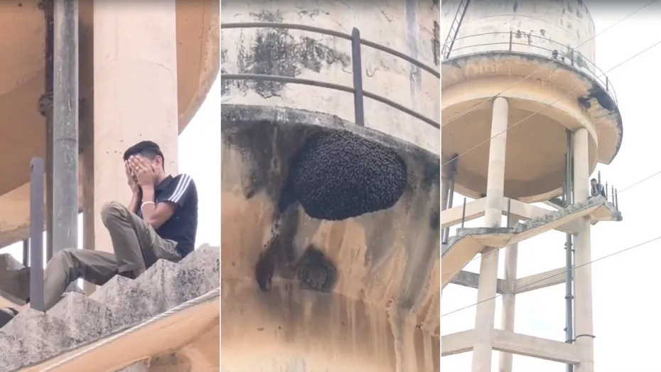 इसी दौरान टंकी पर बने मधुमक्खियों के छत्ते के पास पहुंचते ही एक युवक पर अचानक मधुमक्खियों ने हमला कर दिया। देखते ही देखते युवक मधुमक्खियों से घिर गया। हालांकि इस खतरनाक स्थिति में भी युवक ने हिम्मत नहीं हारी। घबराने के बजाय उसने समझदारी दिखाते हुए टंकी की सीढ़ियों पर बैठकर अपने चेहरे को हाथों से ढक लिया और धीरे-धीरे नीचे उतरना शुरू किया। इस दौरान मधुमक्खियों ने उसे 4-5 जगह डंक भी मारे, लेकिन युवक संतुलन बनाए रखने में सफल रहा।