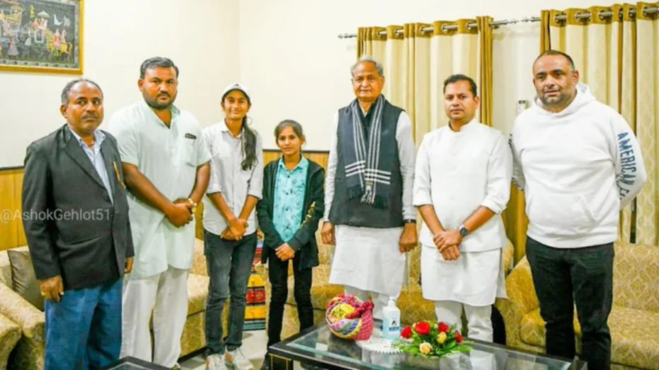 CM गहलोत ने मूमल मेहर के साथ अपनी मुलाकात की तस्वीर सोशल मीडिया पर शेयर की है। उन्होंने कैप्शन लिखा- बेटियों की ऊंची 'उड़ान' गौरवान्वित है राजस्थान। आज अपने परिश्रम व मेधा से वैश्विक चर्चा का विषय बनी प्रदेश की क्रिकेटर बेटी मूमल मेहर व उनकी बहन अनिशा बानो से RCA चेयरमैन वैभव गहलोत के साथ मिलकर उन्हें उज्ज्वल भविष्य की शुभकामनाएं दीं।