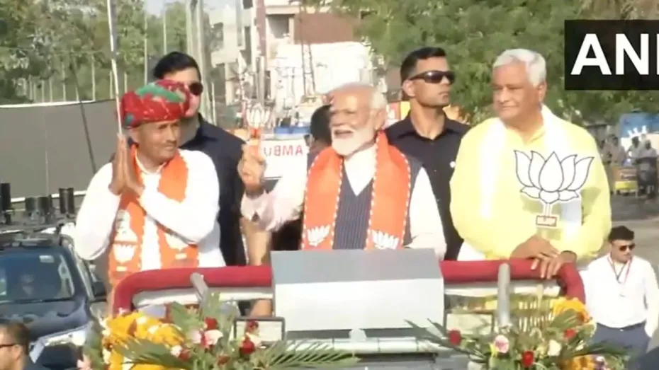 प्रधानमंत्री नरेंद्र मोदी ने राजस्थान के दौसा में आज मेगा रोड शो किया। इस दौरान दौसा से बीजेपी प्रत्याशी कन्हैया लाल मीना और राज्य मंत्री किरोड़ी लाल मीना भी पीएम मोदी के साथ रहे हैं। वहीं इससे पहले पीएम मोदी ने सीमावर्ती बाड़मेर में भारतीय जनता पार्टी (भाजपा) की चुनावी रैली को संबोधित किया। इस दौरान पीएम मोदी ने देश के संविधान को केंद्र सरकार के लिए 'गीता, रामायण, महाभारत एवं कुरान' करार देते हुए कहा कि बाबा साहब आंबेडकर खुद आ जाएं तो भी संविधान खत्म नहीं कर सकते। मोदी ने भाजपा पर संविधान को नष्ट करने के विपक्ष के आरोपों पर पलटवार करते हुए यह बात कही। उन्होंने कहा, ‘‘सब कुछ हमारे लिए हमारा संविधान ही है।’’