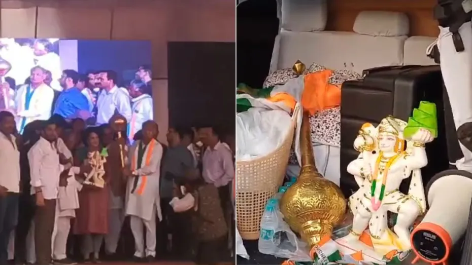 मंत्री की गाड़ी में पहुंची मूर्ति और गदा