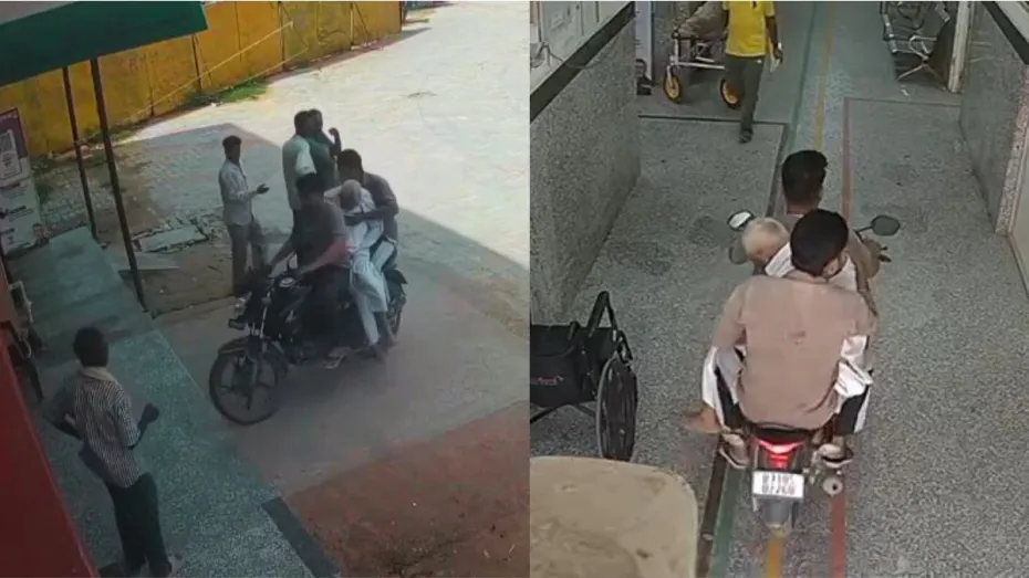 चुरू: राजस्थान के चुरू जिले में थ्री इडियट्स मूवी जैसा एक नजारा देखने को मिला। यहां दो लोग एक बुजुर्ग को बाइक पर बीच में बैठाकर अस्पताल पहुंचे। वह बाइक लेकर अस्पताल के इमरजेंसी वार्ड में घुस गए, जिसके बाद बुजुर्ग का त्वरित इलाज शुरू किया गया। इस घटना का वीडियो भी सामने आया है, जो अस्पताल में लगे सीसीटीवी कैमरे में कैद हो गया। फिलहाल बुजुर्ग की तबीयत अब ठीक है। वहीं डॉक्टरों ने बुजुर्ग को जल्दी अस्पताल लाने के इस प्रयास की सराहना की है।