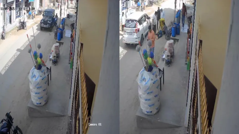 झुंझुनूंः झुंझुनूं जिले के सूरजगढ़ थाना क्षेत्र के जाखोद गांव में बुधवार दोपहर बड़ा हादसा हो गया। बाजार में सड़क किनारे पैदल जा रही एक युवती को तेज रफ्तार काले रंग की बिना नंबर की थार ने जोरदार टक्कर मार दी। हादसे में युवती उछलकर पास में खड़ी बाइक से टकराई और सड़क पर गिरकर गंभीर रूप से घायल हो गई। घटना सीसीटीवी कैमरे में कैद हो गई है।