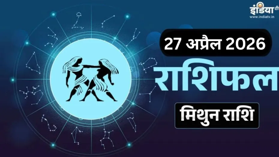 Mithun Rashifal 27 April 2026: बुध की राशि मिथुन वालों को को आज के दिन जीवन में अच्छे परिणाम प्राप्त हो सकते हैं। पारिवारिक जीवन में आपको अच्छे बदलाव देखने को मिल सकते हैं। आप अपने अच्छे कार्यों से घर के लोगों का दिल जीत पाने में भी कामयाब हो सकते हैं। आज शिक्षा क्षेत्र में भी इस राशि के लोग अच्छा प्रदर्शन कर सकते हैं। आइए ऐसे में विस्तार से जानते हैं 27 अप्रैल का मिथुन राशिफल और सोमवार के दिन मिथुन वालों के लिए शुभ रंग और अंक।