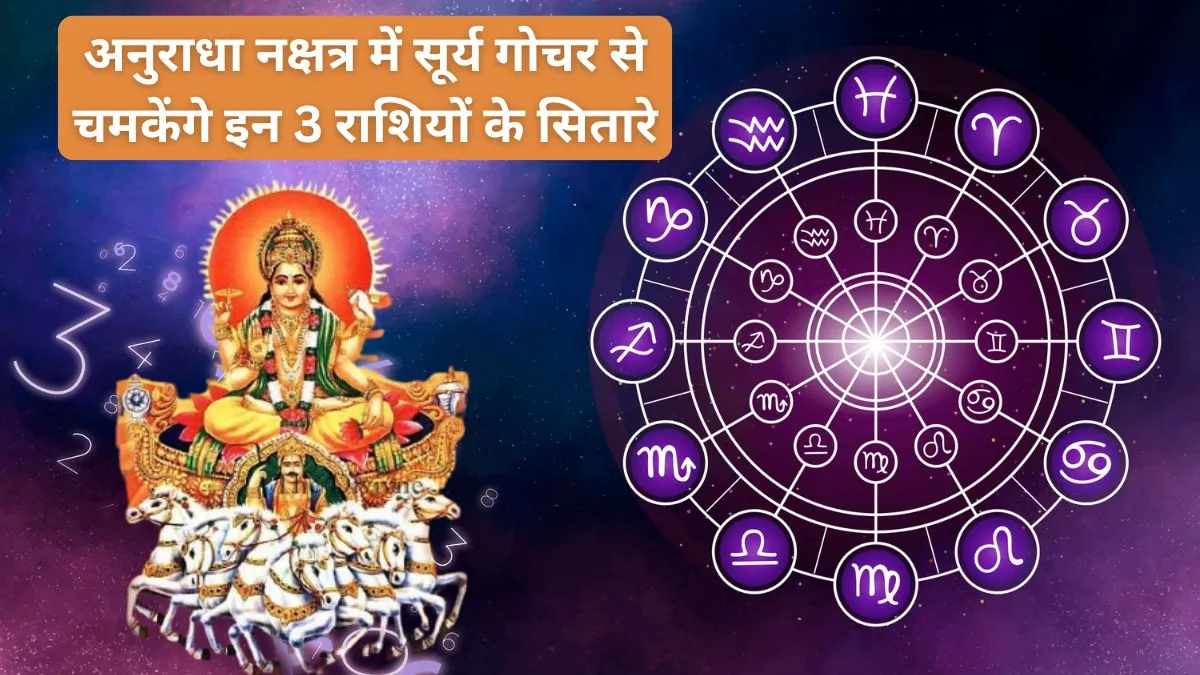 19 नवंबर 2025 को रात 09:03 बजे सूर्यदेव विशाखा से अनुराधा नक्षत्र में प्रवेश करेंगे। अनुराधा नक्षत्र 27 नक्षत्रों में 17वें स्थान पर है और इसका स्वामी ग्रह शनि है। वैसे तो सूर्य और शनि का मेल चुनौती पूर्ण माना जाता है, लेकिन इस समय सूर्य वृश्चिक राशि में स्थित हैं। यही वजह है कि सूर्य का यह गोचर मेष, वृश्चिक और धनु राशि के जातकों को अप्रत्याशित लाभ देगा।