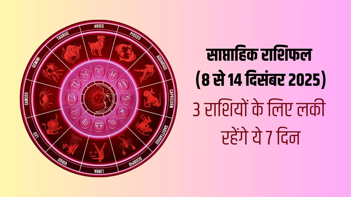 Weekly Horoscope 2025, Lucky Rashi (8 To 14 December 2025): मशहूर ज्योतिषी चिराग दारूवाला जी के अनुसार ये सप्ताह तीन राशियों के लिए काफी लकी साबित होगा। इन राशियों के लोगों को करियर और बिजनेस में अच्छी ग्रोथ देखने को मिलेगी। मेहनत रंग लाएगी। विदेश जाने का भी मौका मिल सकता है। काम से जुड़े कई महत्वपूर्ण निर्णय ले सकते हैं। सितारे आपके पक्ष में दिखाई दे रहे हैं। चलिए अब आपको बताते हैं ये कौन सी लकी राशियां हैं जिनके लिए ये हफ्ता शुभ साबित होगा।