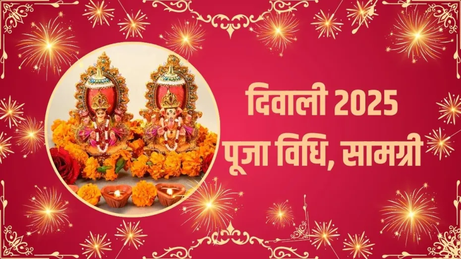 Diwali 2025 Puja Vidhi, Samagri List: इस साल दिवाली का त्योहार 21 अक्टूबर 2025 को मनाया जाएगा। इस दिन विशेष रूप से मां लक्ष्मी, सरस्वती माता, काली माता, भगवान गणेश और कुबेर देवता की पूजा की जाती है। अगर दिवाली पूजन के शुभ मुहूर्त की बात करें तो वो शाम 05 बजकर 50 मिनट से 05 बजकर 56 मिनट तक रहेगा। इस मुहूर्त में विधि विधान दिवाली का पूजन करें और घर में दिए जलाएं। चलिए जान लेते हैं दिवाली पूजन में क्या-क्या सामग्री लगेगी और पूजा की विधि क्या है।