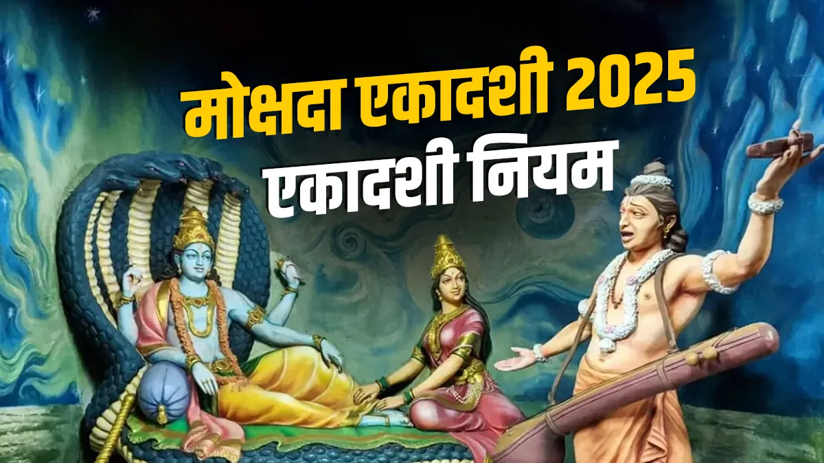 Mokshada Ekadashi 2025 Date and Niyam: एकादशी का व्रत प्रत्येक महीने में दो बार रखा जाता है एक कृष्ण और दूसरा शुक्ल पक्ष में। हर माह में आने वाली एकादशी को अलग-अलग नामों से जाना जाता है। ऐसे ही मार्गशीर्ष महीने के शुक्ल पक्ष की एकादशी तिथि को मोक्षदा एकादशी के नाम से जाना जाता है। मोक्षदा एकादशी को बैकुंठ या मौनी एकादशी के नाम से भी जाना जाता है। शास्त्रों में इस एकादशी का बड़ा ही महत्व बताया गया है। मोक्षदा एकादशी के दिन भगवान विष्णु के दामोदर रूप की पूजा की जाती है। भगवान विष्णु के शंख, गदा, चक्र और पद्मधारी रूप को दामोदर की संज्ञा दी गई है। इस साल मोक्षदा एकादशी का व्रत 1 दिसंबर 2025 को रखा जाएगा।