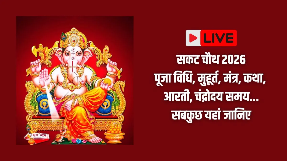 Sakat Chauth 2026 Puja Vidhi, Muhurat, Moon Rise Time Live: सकट चौथ व्रत को संकष्टी चतुर्थी व्रत, माघी चतुर्थी, संकट चौथ, तिल चौथ, तिलकुट चौथ और महाराष्ट्र में लम्बोदर संकष्टी चतुर्थी के नाम से जाना जाता है। मान्यताओं अनुसार इस व्रत को रखने से जीवन के सारे कष्ट दूर हो जाते हैं और भगवान गणेश की विशेष कृपा प्राप्त होती है। वहीं महिलाएं ये व्रत मुख्य रूप से अपनी संतानों की लंबी आयु के लिए रखती हैं। ये व्रत निर्जला या फलाहार का सेवन करते हुए कैसे भी रखा जा सकता है। व्रत की शुरुआत सूर्योदय से होती है और समापन चंद्रोदय के बाद होता है। इस व्रत का मुख्य प्रसाद तिल और गुड़ के लड्डू, काली गाजर और शकरकंद होता है। यहां आप जानेंगे सकट चौथ से जुड़ी हर एक जानकारी।