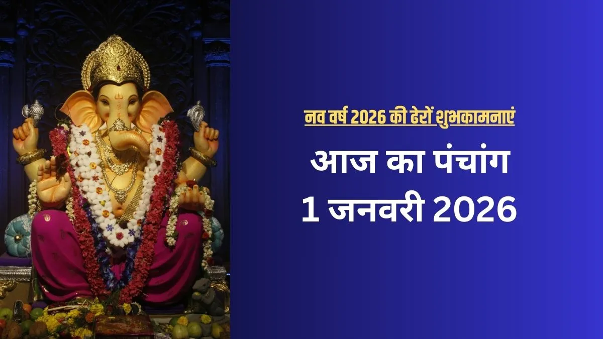 Aaj Ka Panchang 1 January 2026 In Hindi: आज पौष शुक्ल पक्ष की त्रयोदशी तिथि और गुरुवार का दिन है। त्रयोदशी तिथि आज रात 10 बजकर 23 मिनट तक रहेगी। आज से नये साल यानि वर्ष 2026 की शुरुआत हो चुकी है। भारत ही नहीं बल्कि विश्व के लगभग सभी देशों में लोग आज के दिन को बहुत ही हर्षोल्लास के साथ सेलिब्रेट करते है। आज शाम 5 बजकर 13 मिनट तक शुभ योग रहेगा। अपने नाम की तरह ही यह बड़ा शुभ माना जाता है। इस योग में किये गये कामों से शुभ फलों की प्राप्ति होती है। साथ ही प्रसिद्धि की भी प्राप्ति होती है। साथ ही आज रात 10 बजकर 49 मिनट तक रोहिणी नक्षत्र रहेगा।