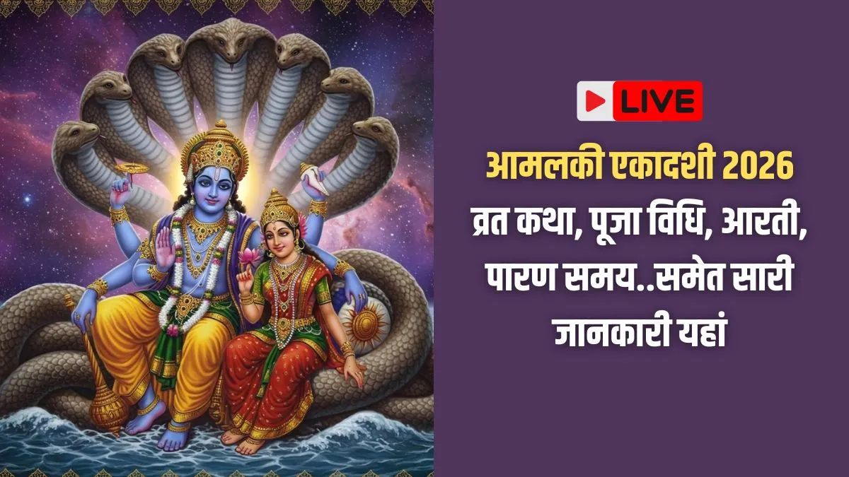 Amalaki Ekadashi 2026 Live: हिंदू पंचांग के अनुसार फाल्गुन शुक्ल पक्ष की एकादशी को आमलकी एकादशी या आंवला एकादशी के नाम से जाना जाता है। इस एकादशी पर भगवान विष्णु और आंवले के पेड़ की पूजा होती है। धार्मिक मान्यताओं के अनुसार जो भी भक्त आमलकी एकादशी का व्रत रखता है उसे सौ गौ दान के बराबर फल प्राप्त होता है। मान्यता है इस एकादशी पर भगवान विष्णु आंवला के पेड़ में निवास करते हैं इसलिए इस दिन आंवले के पेड़ की पूजा करने से भगवान विष्णु की विशेष कृपा प्राप्त होती है। चलिए आपको बताते हैं आमलकी एकादशी की पूजा विधि, मुहूर्त और व्रत कथा।