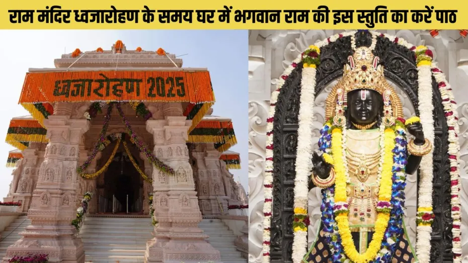Shri Ram Stuti: राम मंदिर में ध्वजारोहण बेहद ही शुभ दिन पर हो रहा है। बता दें आज यानी 25 नवंबर 2025 को विवाह पंचमी है जो भगवान राम और देवी सीता के विवाह की वर्षगांठ के रूप में मनायी जाती है। हिंदू धार्मिक मान्यताओं अनुसार आज के दिन ही भगवान राम का विवाह माता सीता के साथ हुआ था। आज मार्गशीर्ष शुक्ल पक्ष की पंचमी तिथि है। ऐसे में इस दिन राम मंदिर में इस दिव्य आयोजन का होना अपने आप में बेहद खास रहेगा। ऐसे में आप भी घर बैठे इस शुभ घड़ी में राम जी की स्तुति कर पुण्य की प्राप्ति कर सकते हैं। मान्यताओं अनुसार विवाह पंचमी के दिन भगवान राम की स्तुति करने से जीवन के सभी कष्टों से छुटकारा मिल जाता है।