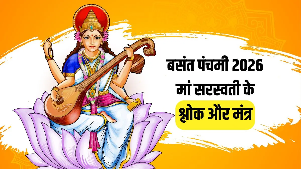 Basant Panchami Shlok & Mantra: मां सरस्वती को हिंदू धर्म में ज्ञान की देवी के रूप में पूजा जाता है। कहते हैं जिस किसी पर माता की विशेष कृपा बरसती है उसे जीवन में सफल होने से कोई रोक नहीं सकता। हिंदू धार्मिक मान्यताओं अनुसार मां सरस्वती की कृपा से ही समस्त संसार को वाणी और संगीत की प्राप्ति हुई थी। कहते हैं जिस दिन मां सरस्वती का जन्म हुआ था उस दिन माघ शुक्ल पक्ष की पंचमी तिथि थी इसलिए ही हर साल इस तिथि को बसंत पंचमी या सरस्वती पूजा के रूप में मनाया जाने लगा। कहते हैं इस दिन मां सरस्वती की विशेष अराधना करने से जीवन में सुख-समद्धि की प्राप्ति होती है।