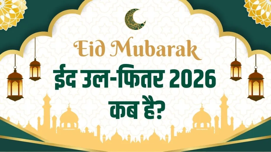 Eid Kab Hai 2026: ईद मुसलमानों का एक बड़ा और महत्वपूर्ण त्योहार है जो हर साल शव्वाल महीने की पहली तारीख को मनाया जाता है। ये त्योहार रमजान महीने के अंत का प्रतीक होता है। इस दिन घरों में सेवइयां और तरह-तरह के पकवान बनाए जाते हैं। मुसलमान सुबह ईद की नमाज अदा करते हैं और गरीबों और जरूरतमंदों को जकात-उल-फितर (फितरा) देते हैं जिससे वो लोग भी ईद मना सकें। इस दिन लोग एक-दूसरे को गले लगाकर ईद मुबारक कहते हैं। जानिए इस साल ईद कब मनाई जाएगी।