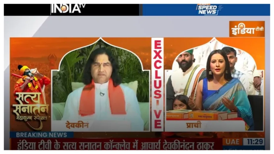 Mahakumbh 2025: महाकुंभ 2025 के खास मौके पर इंडिया टीवी के स्पेशल प्रोग्राम 'सत्य सनातन' में आचार्य देवकीनंदन ठाकुर ने कई अहम मुद्दों पर बात की। उन्होंने बताया कि क्या महाकुंभ के जमघट से सनातन एकजुट होगा। उन्होंने यह भी बताया कि जब महाकुंभ में सब निहित है तो मुसलमान वर्जित क्यों हैं?