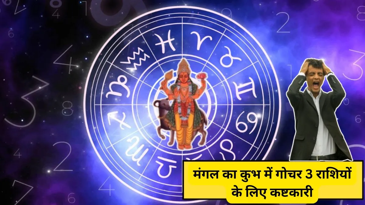 ज्योतिषाचार्यों के अनुसार, मंगल ग्रह का यह गोचर कुंभ राशि वालों के पहले/लग्न भाव में होने जा रहे हैं। शनि का घर है कुंभ राशि, ऐसे में मंगल-शनि के शत्रु भाव के कारण यह गोचर आपके लिए बहेद कष्टकारी रहने वाला है। इस दौरान कुंभ राशि वालों को तरक्की की राह में परेशानियों का सामना करना पड़ सकता है और कई तरह की दिक्कतें आएंगी। इस समय बड़े या महत्वपूर्ण फैसले बिना सोचे-समझें न लें। लव लाइफ में दिखावा और उतावलापन रिश्ते को खराब कर सकता है। इस राशि के छात्र-छात्राओं को अच्छे नतीजों के लिए और ज्यादा मेहनत करनी होगी। कुछ समय माता-पिता की सेवा के लिए निकालना होगा।