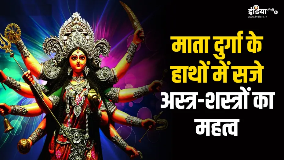 यानि माता दुर्गा के हाथों के सभी अस्त्र-शस्त्र और प्रतीक माता दुर्गा की ज्ञान, शक्ति और संतुलन को दर्शाते हैं। माता के ये प्रतीक न केवल उनको युद्ध की देवी बल्कि शांति, ज्ञान, और मोक्ष की देवी के रूप में भी स्थापित करते हैं।