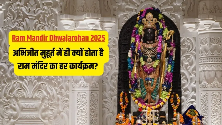 Ram Mandir Dhwajarohan 2025: आज 25 नवंबर 2025 को विवाह पंचमी के दिन अयोध्या राम मंदिर में ध्वजारोहण किया जाएगा। जिसके लिए अभिजीत मुहूर्त चुना गया है जो आज सुबह 11 बजकर 45 मिनट से लेकर दोपहर 12 बजकर 29 मिनट तक रहेगा। ऐसे में कई लोगों के मन में ये सवाल है कि आखिर इस शुभ कार्य के लिए अभिजीत मुहूर्त को ही क्यों चुना गया है क्योंकि इसके पहले राम मंदिर भूमि पूजन और रामलला की प्राण प्रतिष्ठा भी इसी मुहूर्त में की गई थी। तो क्या इस मुहूर्त का भगवान राम से कोई कनेक्शन है क्योंकि राम मंदिर से जुड़े अधिकतर आयोजन इसी मुहूर्त में होते हैं। चलिए आपको इस बारे में विस्तार से बताते हैं।