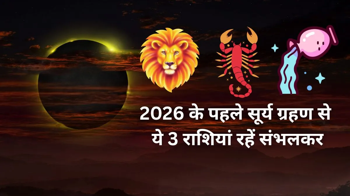 Surya Grahan 2026: साल का पहला सूर्य ग्रहण 17 फरवरी 2026 को लग रहा है। ये वलयाकार सूर्य ग्रहण होगा जो फाल्गुन अमावस्या के दिन लगेगा। ग्रहण के समय सूर्य देव शनि की राशि कुंभ में विराजमान होंगे। ज्योतिष अनुसार ये ग्रहण 3 राशि वालों की मानसिक स्थिति, करियर, स्वास्थ्य और आर्थिक लाइफ पर गहरा प्रभाव डालेगा। ऐसे में इन राशि वालों की छोटी-सी गलती भी इनका बड़ा नुकसान करा सकती है। चलिए जानते हैं ये कौन सी राशियां हैं।