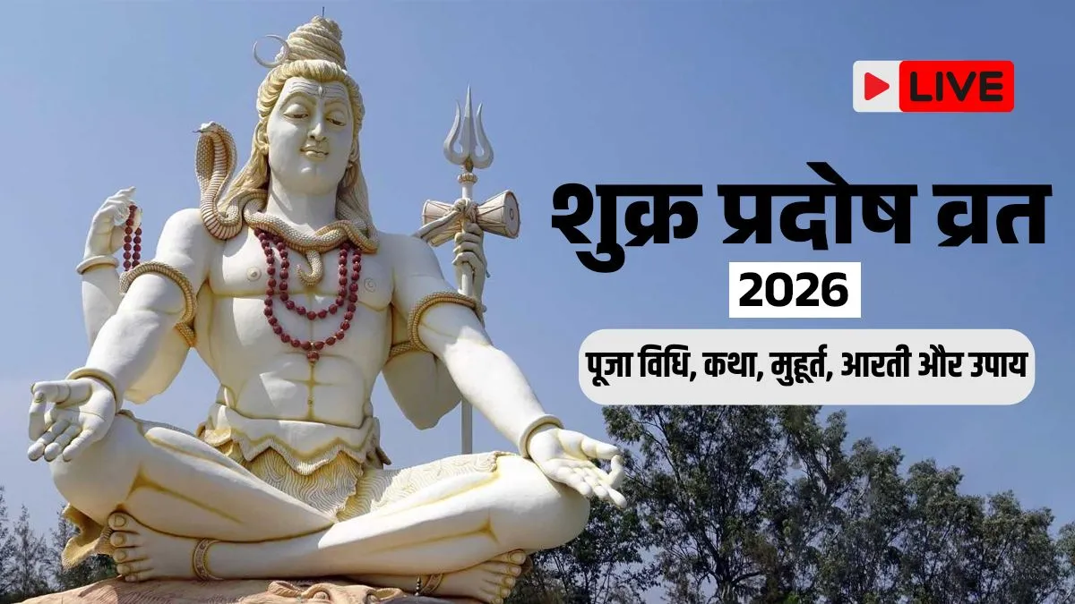 Shukra Pradosh 2026 Vrat Katha, Muhurat Live: सनातन धर्म में शुक्र प्रदोष व्रत का विशेष महत्व माना जाता है। शिव पुराण में इस बात का स्पष्ट उल्लेख है कि 'जो त्रयोदशी व्रत करे हमेशा, तन नहिं राखे रहे कलेशा।' ये व्रत जन्म-जन्मांतर के सभी शारीरिक और मानसिक कष्टों का नाश कर देता है। तो वहीं स्कंद पुराण में इस व्रत को ऐश्वर्य प्रदायक बताया गया है। ज्योतिष में शुक्र को वैभव और सुख का कारक माना गया है। यही कारण है कि शुक्रवार को पड़ने वाला प्रदोष व्रत दरिद्रता का नाश कर देता है और जीवन धन-धान्य से भर देता है।