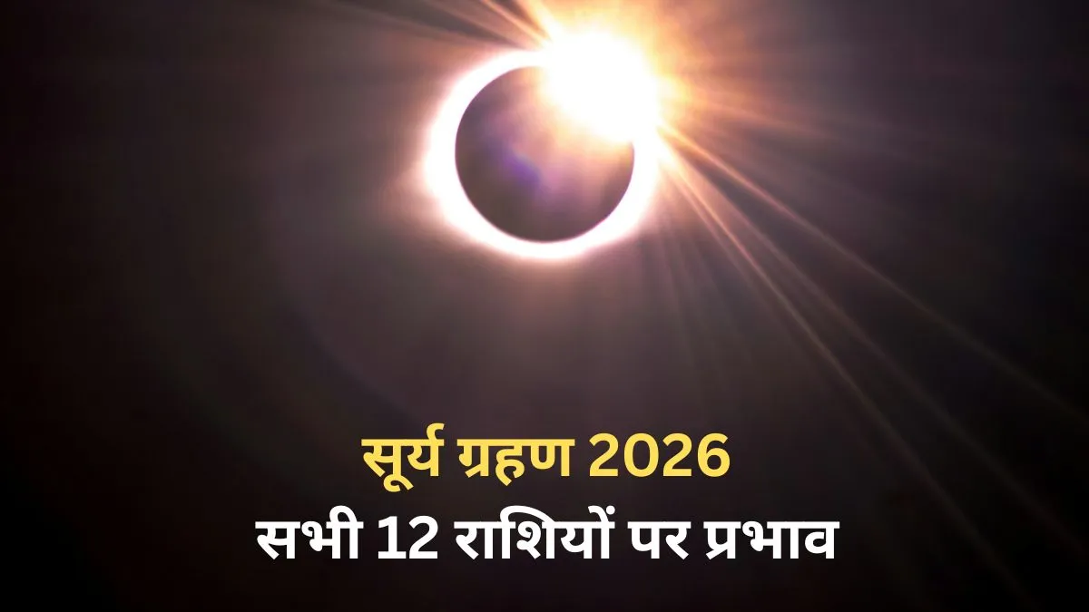 Surya Grahan 2026: साल 2026 का पहला सूर्य ग्रहण 17 फरवरी को है। यह सूर्य ग्रहण शनि की राशि कुंभ में लगने जा रहा है। भारतीय समय के अनुसार दोपहर 3 बजकर 26 मिनट से यह सूर्य ग्रहण शुरू होगा और रात्रि 7 बजकर 57 मिनट तक रहेगा। सूर्य ग्रहण का मेष से लेकर मीन तक सभी 12 राशियों पर क्या प्रभाव दिख सकता है इसके बारे में आइए जानते हैं आचार्य इंदु प्रकाश से।