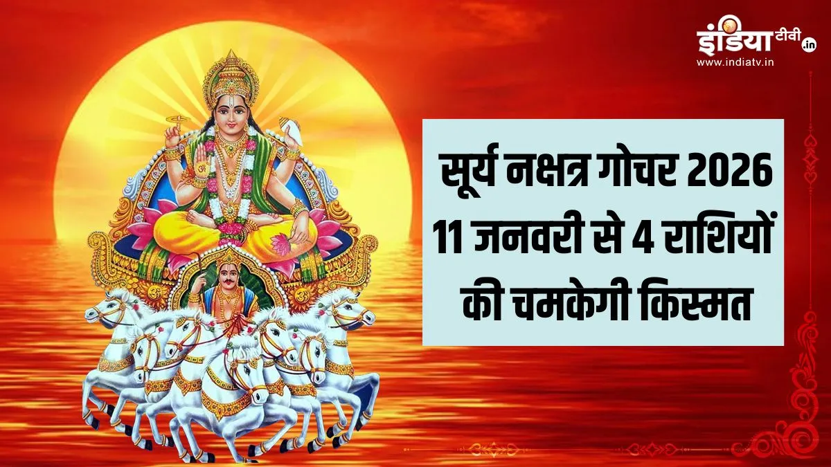 Surya Nakshatra Parivartan 2026: ग्रहों के राजा सूर्य देव जब भी अपनी राशि या नक्षत्र बदलते हैं तो उसका प्रभाव सभी राशियों पर पड़ता है। 11 जनवरी 2026 को सुबह 8 बजकर 42 मिनट पर सूर्य देव उत्तराषाढा नक्षत्र में प्रवेश कर रहे हैं। इन नक्षत्र में सूर्य का गोचर 4 राशियों के लिए लाभकारी साबित होगा। इन राशियों की तकदीर इस गोचर से बदल जाएगी। जानिए ये कौन सी राशियां हैं।