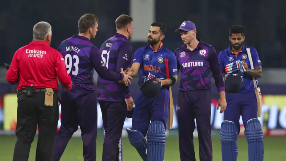 भारत की स्कॉटलैंड पर धमाकेदार जीत के बाद विराट कोहली की टोली की सेमीफाइनल में पहुंचने की उम्मीद जाग गई है। भारत का इस टूर्नामेंट में आगाज बेहद ही निराशाजनक रहा था। पहले मुकाबले में चिर प्रतिद्वंदी पाकिस्तान के हाथों टीम इंडिया को 10 विकेट से हार का सामना करना पड़ा था, इसके बाद न्यूजीलैंड ने भी भारत को 5 विकेट से धूल चटाई थी। इन दो बड़े मुकाबलों में हार के बाद भारतीय दर्शकों ने विराट कोहली की टोली की सेमीफाइनल में पहुंचने की उम्मीद छोड़ दी थी। मगर दिलेर टीम इंडिया ने टूर्नामेंट में शानदार वापसी करते हुए इस उम्मीद को फिर जगा दिया है। पहले दो मैच हारने के बाद भारत ने अफगानिस्तान को 66 रन और अब स्कॉटलैंड को 8 विकेट से हराया है। दो शानदार जीत के साथ टीम इंडिया का रन रेट 1.62 का हो गया है, जो अफगानिस्तान और न्यूजीलैंड से अधिक है।