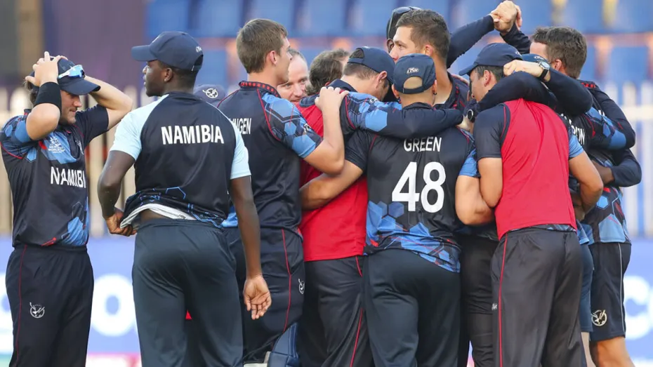 विसे ने चौका लगाकर टीम को सुपर 12 में पहुंचाया। इरास्मस ने 49 गेंद में तीन चौके और एक छक्के से नाबाद 53 रन बनाये। उनके साथ डेविड विसे ने 14 गेंद में एक चौके और दो छक्के से नाबाद 28 रन की पारी खेली। कर्टिस कैम्फर ने नामीबिया के दोनों सलामी बल्लेबाजों के विकेट झटके। उन्होंने पहले छठे ओवर में क्रेग विलियम्स (15) और 14वें ओवर में जेन ग्रीन (24) को आउट किया।