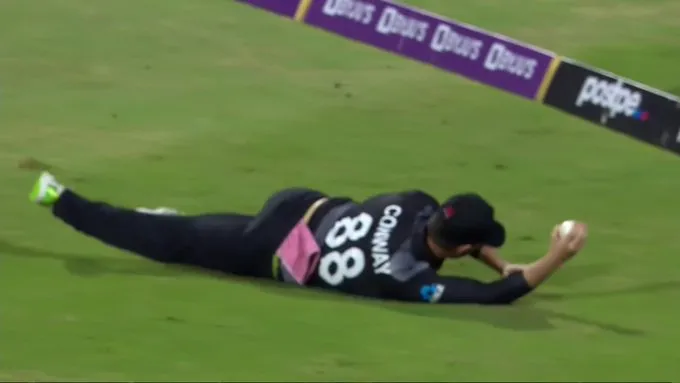 कॉनवे के कैच का ये वीडिया सोशल मीडिया पर काफी वायरल हो रहा है। आईसीसी ने फेसबुक पर ये वीडियो शेयर की। उन्होंने कैप्शन में लिखा, "डेवॉन कॉनवे बने सुपरमैन। क्या आपने कैच ऑफ द टूर्नामेंट का कैच देखा?!?"