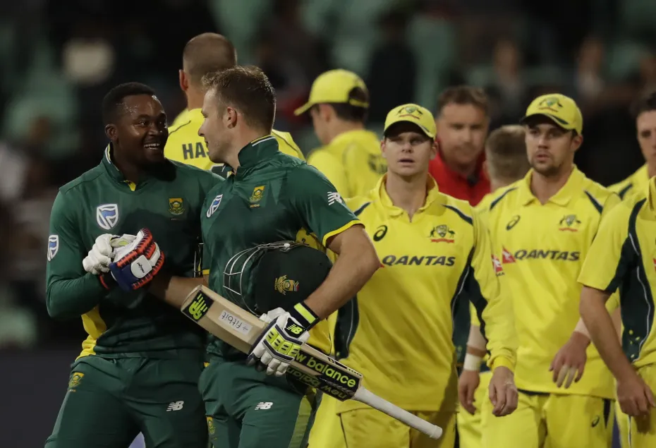 डरबन: किंग्समीड पर खेले गये आज तीसरे एक दिवसीय अंतरराष्ट्रीय क्रिकेट मैच में दक्षिण अफ्रीका ने विशाल रनों का पीछा करते हुए ऑस्ट्रेलिया को चार विकेट से हराकर पांच मैचों की श्रृंखला पर अपनी पकड़ मजबूत कर ली है। ऑस्ट्रेलिया ने 50 ओवरों में छह विकेट के नुकसान पर कुल 371 रन बनाए थे जिसके जवाब में दक्षिण अफ्रीका ने डेविड मीलर के अविजित 118 रनों के बदौलत चार गेंद शेष रहते हुए मैच चार विकेट से अपने नाम कर लिया। घर में यह किसी भी टीम का दूसरा सर्वोच्च स्कोर का सफल पीछा करने का रिकॉर्ड है। इसके साथ ही दक्षिण अफ्रीका ने पांच मैचों की श्रृंखला में 3-0 की अजेय बढ़त बना ली है।