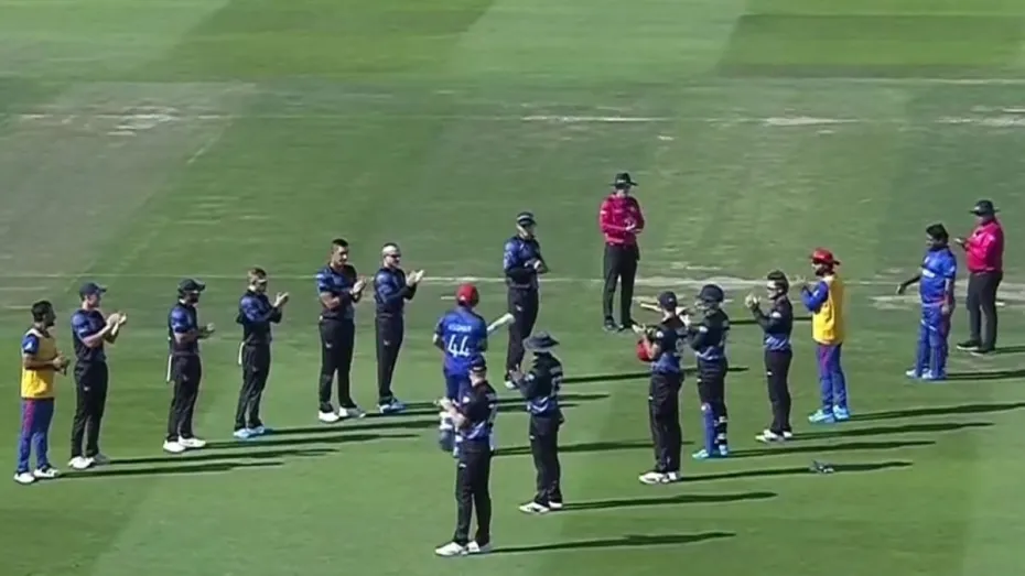 अफगानिस्तान ने आज टॉस जीत कर पहले बल्लेबाजी करने का फैसला किया था। प्लेइंग 11 में उन्होंने मुजीब उर रहमान की जगह पर हामिद हसन को मौका दिया। टीम ने पहली पारी खेल कर 160 रन बनाए। जब असगर अफगान बल्लेबाजी के लिए उतरे तो नामीबिया के खिलाड़ियों उनको गार्ड ऑफ ऑनर दिया।