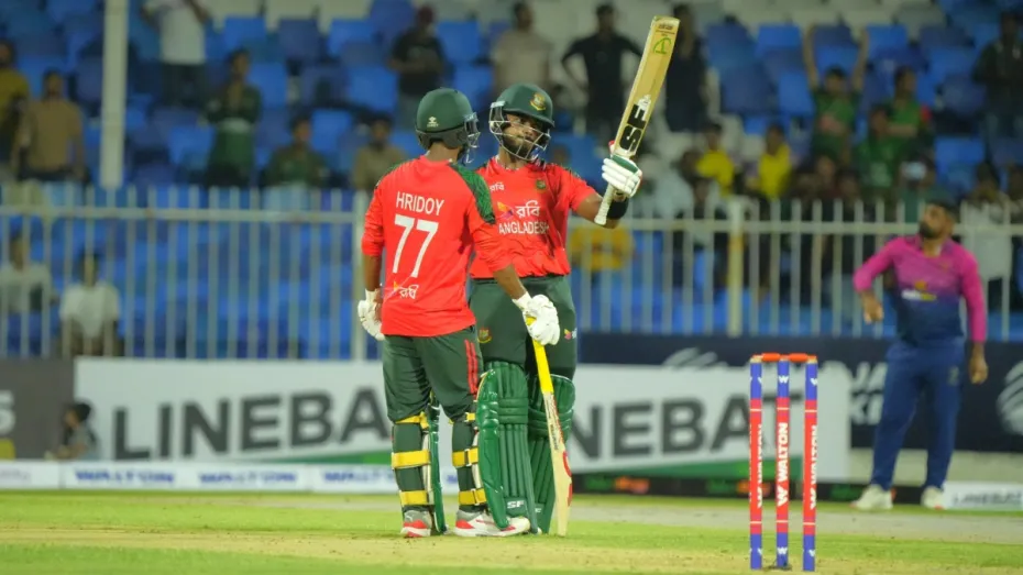 एकतरफ जहां भारतीय फैंस आईपीएल में व्यस्त हैं तो वहीं दूसरी तरफ इंटरनेशनल सीरीज का भी आगाज हो चुका है, जिसमें बांग्लादेश की टीम 2 मैचों की टी20 सीरीज खेलने के लिए यूएई के दौरे पर पहुंची है, जिसमें दोनों टीमों के बीच खेले गए पहले टी20 मुकाबले को बांग्लादेश की टीम ने 27 रनों से अपने नाम किया। वहीं इस मैच में बांग्लादेश टीम की जीत में उनके 22 साल के बाएं हाथ के विकेटकीपर बल्लेबाज परवेज हुसैन इमोन ने अहम भूमिका निभाई जिनके बल्ले से 54 गेंदों में 100 रनों की बेहतरीन पारी देखने को मिली। इमोन ने अपने इस शतक के दम पर कई बेहतरीन रिकॉर्ड भी बनाने का काम किया।