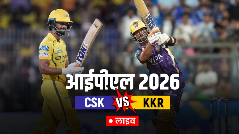 CSK vs KKR Live Score: IPL 2026 में अहम मुकाबला खेला जा रहा है, जहां चेन्नई सुपर किंग्स और कोलकाता नाइट राइडर्स चेन्नई के एमए चिदंबरम स्टेडियम में आमने-सामने हैं। कोलकाता नाइट राइडर्स के कप्तान अजिंक्य रहाणे ने टॉस जीतकर पहले गेंदबाजी करने का फैसला किया था। इसके बाद चेन्नई सुपर किंग्स की टीम ने पहले बल्लेबाजी करते हुए 20 ओवर्स में 5 विकेट के नुकसान पर 192 रनों का स्कोर बनाया है। सीएसके की तरफ से संजू सैमसन ने सबसे ज्यादा 48 रनों की पारी खेली तो वहीं इसके अलावा डेवाल्ड ब्रेविस ने 41 जबकि आयुष म्हात्रे के बल्ले से 38 रनों की पारी देखने को मिली। केकेआर की तरफ से गेंदबाजी में कार्तिक त्यागी ने सबसे ज्यादा 2 विकेट हासिल किए तो वहीं इसके अलावा वैभव अरोड़ा, सुनील नरेन और अनुकूल रॉय 1-1 विकेट लेने में कामयाब रहे।