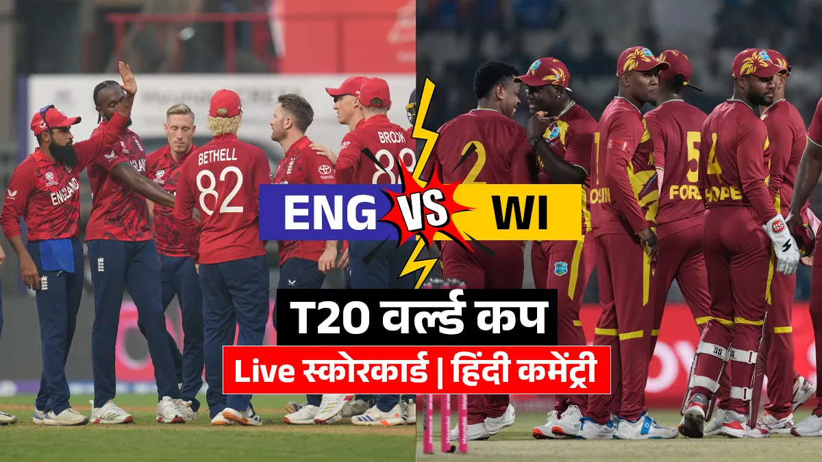 ENG vs WI Cricket Score Live Updates: इंग्लैंड और वेस्टइंडीज के बीच मुकाबला है। टी20 विश्व कप 2026 में ये एक बड़ा मैच है। इस बीच इंग्लैंड के कप्तान हैरी ब्रूक ने टॉस जीतकर पहले गेंदबाजी का फैसला किया है। यानी वेस्टइंडीज की टीम पहले बल्लेबाजी कर रही और जो भी टारगेट रखा जाएगा, उसका पीछा इंग्लैंड करेगी। इंग्लैंड और वेस्टइंडीज की टीमें अब तक अपना एक एक मैच खेल चुकी हैं और दोनों ने अपने अपने मैच जीते हैं। इसके बाद भी बेहतर नेट रन रेट के कारण वेस्टइंडीज की टीम ग्रुप सी में पहले नंबर पर चल रही है, वहीं इंग्लैंड की टीम प्वाइंट्स टेबल में तीसरे नंबर प चल रही है। आज जो भी टीम जीत दर्ज करेगी, वो चार अंक लेकर नंबर एक पर पहुंच जाएगी, वहीं हारने वाली टीम को नुकसान होगा।