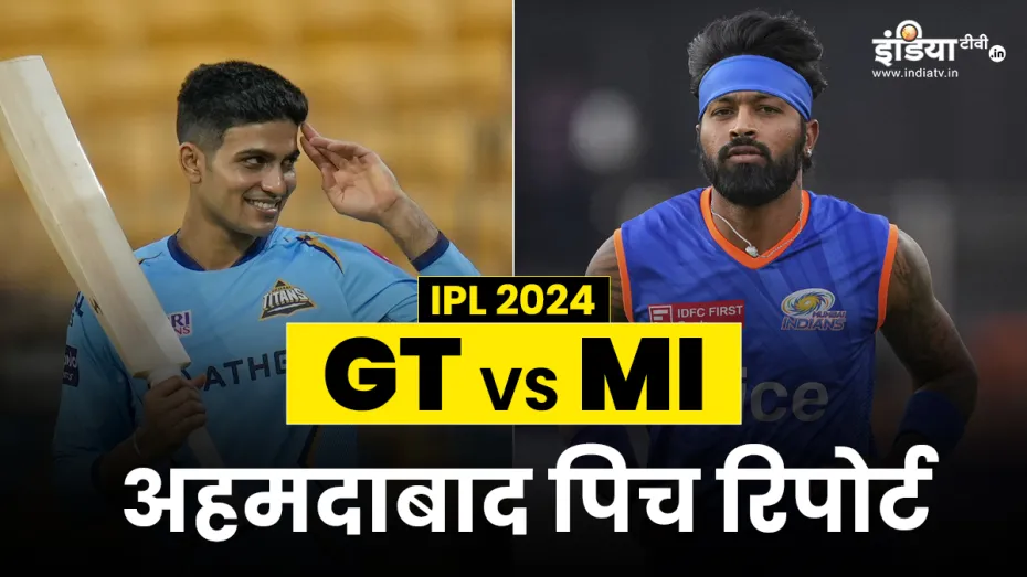 GT vs MI Pitch Report: इंडियन प्रीमियर लीग (आईपीएल) के 17वें सीजन के 5वें मुकाबले का फैंस काफी बेसब्री से इंतजार कर रहे हैं, जिसमें गुजरात टाइटंस टीम का सामना मुंबई इंडियंस से होगा। दोनों ही टीमें इस सीजन नए कप्तान के नेतृत्व में खेलने मैदान पर उतरेंगी, जिसमें गुजरात टीम की कप्तानी युवा खिलाड़ी शुभमन गिल संभालते हुए नजर आएंगे तो वहीं मुंबई इंडियंस टीम की कप्तानी रोहित शर्मा की जगह पर हार्दिक पांड्या संभालेंगे। दोनों टीमों के बीच ये मुकाबला अहमदाबाद के नरेंद्र मोदी स्टेडियम में खेला जाएगा, जहां की पिच के बारे में दोनों ही टीमों के कप्तानों को काफी बेहतर तरीके से पता है। इस मैदान पर जब पिछले सीजन खेले गए क्वालीफायर मुकाबले में दोनों टीमों की भिड़ंत हुई थी तो उसमें शुभमन गिल के बल्ले से शानदार शतकीय पारी देखने को मिली थी।
