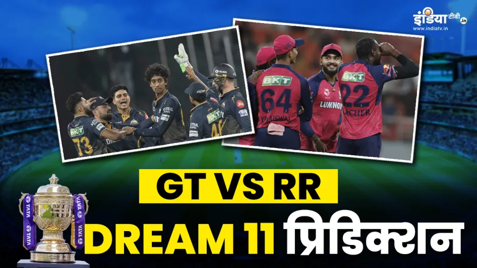 GT vs RR Dream11 Prediction: आईपीएल 2025 का 23वां मुकाबला गुजरात टाइटंस और राजस्थान रॉयल्स के बीच अहमदाबाद के नरेंद्र मोदी स्टेडियम में खेला जाएगा। दोनों ही टीमों ने अपने पिछले मुकाबले में शानदार जीत हासिल की है। राजस्थान ने अपने पिछले मैच में पंजाब किंग्स को 50 रनों से हराया था। वहीं गुजरात ने सनराइजर्स हैदराबाद को 7 विकेट से करारी शिकस्त दी थी। पॉइंट्स टेबल में गुजरात टाइटंस 6 अंकों के साथ दूसरे नंबर पर है तो वहीं राजस्थान की टीम पॉइंट्स टेबल में 4 अंकों के साथ सातवें नंबर पर है। हम आपको गुजरात टाइटंस और राजस्थान रॉयल्स के बीच होने वाले इस मुकाबले की Dream11 टीम के बारे में बताने जा रहे हैं।
