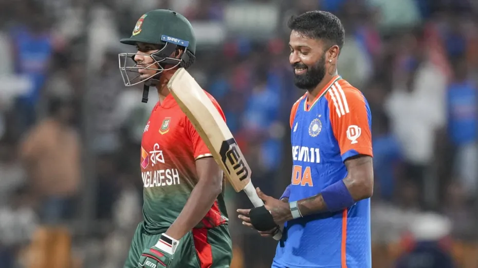 बल्लेबाजी से पहले हार्दिक पांड्या ने गेंदबाजी में अच्छा प्रदर्शन किया। उन्होंने 4 ओवर में 26 रन देकर 1 विकेट हासिल किया। इसके अलावा वह फील्डिंग में भी पीछे नहीं रहे और उन्होंने तौहीद ह्रदय और रियाद हुसैन के कैच पकड़े। उनकी फुर्ती मैदान पर देखते ही बनती है।
