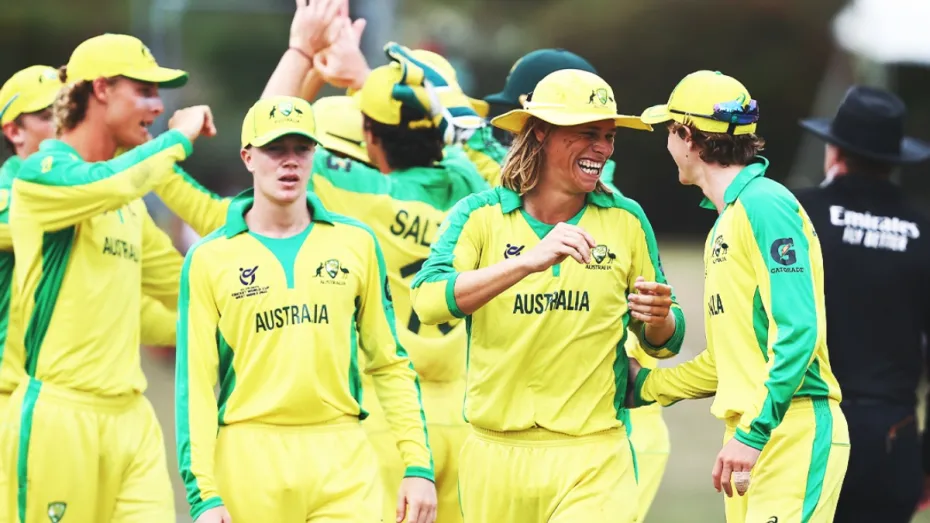 मैच में लक्ष्य का पीछा करने उतरी ऑस्ट्रेलिया की तरफ की तरफ से बल्लेबाजी करते हुए निवेतन राधाकृष्णन और कैम्पबेल केलावे ने बेहतरीन अर्धशतकीय पारी खेली। राधाकृष्णन ने 96 गेंदों में 66 रनों की पारी खेली जबकि कैम्पबेल ने 82 गेंद में 51 रन बनाए। इन दोनों के अलावा टीग विली, लछलन शॉ और कोरी मिलर ने 13-13 रन बनाए।