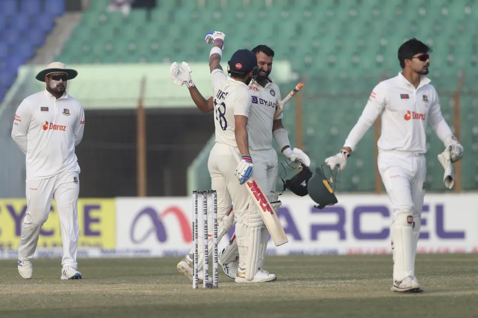चेतेश्वर पुजारा ने तकरीबन 47 महीने यानी करीब 4 साल बाद अपना टेस्ट शतक जड़ा। उन्होंने चटोग्राम टेस्ट की पहली पारी में 92 और दूसरी पारी में नाबाद 102 रन बनाए थे। उन्हें प्लेयर ऑफ द सीरीज भी चुना गया। वहीं भारत ने इस जीत के साथ साल 2022 में अपना सफर खत्म किया। अब भारत नए साल यानी 2023 में 3 जनवरी से श्रीलंका के खिलाफ व्हाइट बॉल सीरीज से अपना अभियान शुरू करेगा। अगले साल वर्ल्ड टेस्ट चैंपियनशिप के दूसरे संस्करण का फाइनल और वनडे वर्ल्ड कप भी खेला जाना है। इन दोनों ही अहम टाइटल पर निश्चित ही भारतीय टीम की नजरें रहने वाली हैं। विराट कोहली ने टी20 और वनडे में तो लय हासिल कर ली है अब टेस्ट में उनकी एक बेहतरीन पारी का इंतजार है।