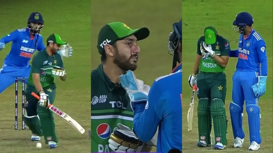 इसके बाद क्रीज पर मौजूद थे पाकिस्तान के आघा सलमान और इफ्तिखार अहमद। इसी दौरान पारी के 21वें ओवर की आखिरी गेंद पर रवींद्र जडेजा के खिलाफ सलमान ने स्वीप शॉट खेलना का प्रयास किया। लेकिन गेंद उनके बल्ले से नहीं लगी और अंदरूनी किनारा लगने के बाद सीधे उनकी दाईं आंख के नीचे चेहरे पर जा लगी। गेंद लगते ही उनकी आंख के नीचे और नाक के पास से खून निकलने लगा। केएल राहुल तुरंत दौड़कर उनके पास पहुंचे। फिर इसके बाद फिजियो भी मैदान पर आ गए।
