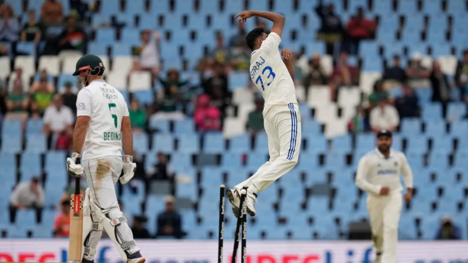दिन का आखिरी सेशन शुरू होने के साथ एल्गर और बेडिंगहम ने तेजी के साथ रन बनाने का सिलसिला जारी रखा, जिससे जल्द ही अफ्रीकी टीम का स्कोर 200 रनों के पार पहुंच गया था। वहीं डेविड बेडिंगहम जो पहली बार टेस्ट क्रिकेट में खेलने उतरे थे उन्होंने अपना अर्धशतक पूरा कर लिया। इसी बीच उन्हें 56 के निजी स्कोर पर मोहम्मद सिराज ने बोल्ड करते हुए भारत को इस मुकाबले में चौथी सफलता दिलाई। एल्गर और बेडिंगहम के बीच चौथे विकेट के लिए 131 रनों की साझेजारी हुई। दिन के अंत में बल्लेबाजी करने उतरे काइल वेरेनी बल्ले से कुछ खास नहीं कर सके और सिर्फ 4 रन बनाकर प्रसिद्ध कृष्णा का शिकार बने। दिन का अंत होने पर साउथ अफ्रीका की टीम का स्कोर 5 विकेट के नुकसान पर 256 रन था और उनके पास अब 11 रनों की बढ़त हासिल है।